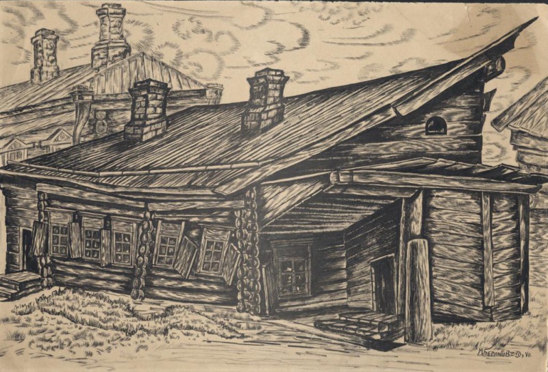 Бумага, тушь. 39,5x26 Внизу справа: М. Берингов - 20 г. VII Томский областной краеведческий музей (ТОКМ 1343)