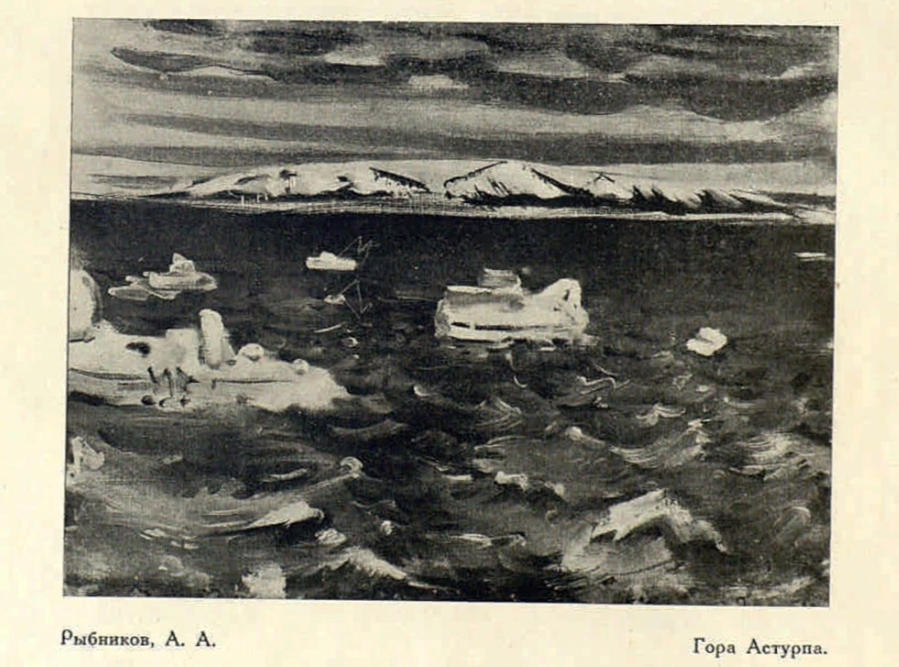 Отдельные моменты обратного пути (я возвращался на «Красине») запечатлены в этюдах «Черный шторм в Баренцовом море», отдаленный «мыс Желания» и, наконец, остров голубых песков, мрачный «Кильдин» и Кольское побережье.