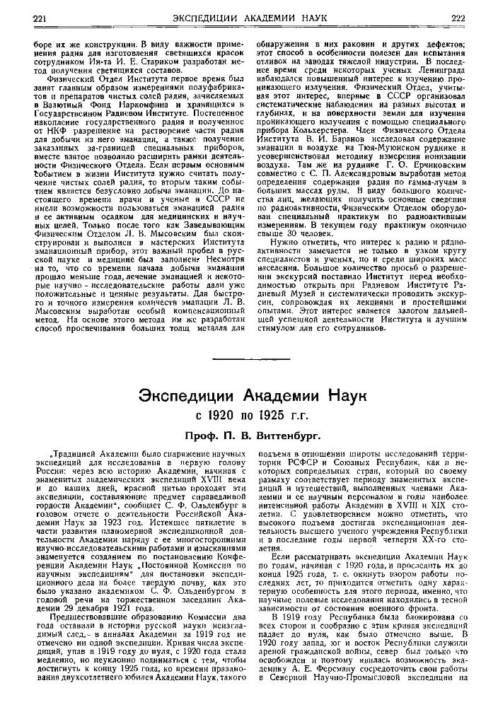 Экспедиции Академии Наук с 1920 по 1925 г.г.
