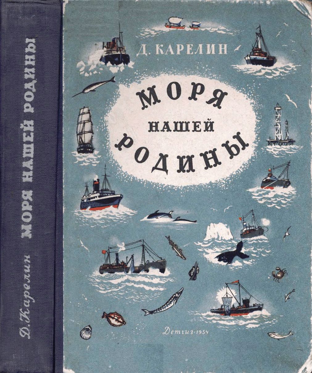 Карелин Д.Б. Моря нашей Родины: Очерки по физической географии и истории исследования морей СССР. 2-е издание, дополненное. Для средней школы. Научный редактор и автор предисловия А.В. Забелло. Иллюстрации В. Тамби, И. Харкевича и Л. Коростышевского. Обложка и цветные вклейки В. Тамби. Карты А. Заварзина.Ленинград: Детгиз, 1954. - Школьная библиотека)