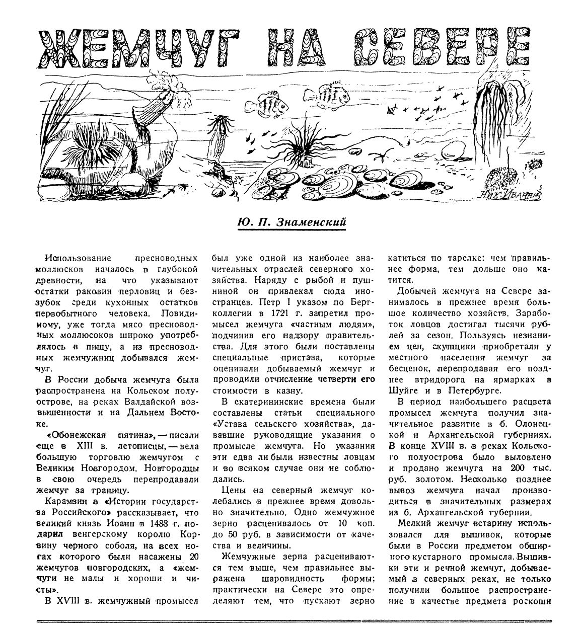 Герб города изображает щит, в верхней части которого находится губернский герб, а в нижней, в голубом поле, венок из жемчуга. Это последнее обстоятельство немаловажно и не потеряло своего значения и до сих пор. В порожистой, быстрой и местами чрезвычайно мелкой реке Кеми попадаются жемчужные раковины, хотя лов их и не составляет исключительного занятия всех жителей, но даже и одного какого-нибудь семейства. Жемчуг этот ловят от безделья досужие люди и не всегда для продажи, потому что здешний жемчуг невысокой доброты и попадается в реке в незначительном количестве. Иногда целый день терпеливые люди роются в воде и достают много горсть, чаще три-четыре зернышка. Ловля эта обыкновенно производится следующим простым способом. Искатели садятся на бревенчатый плот небольшой, с отверстием в середине, заставленным трубой. Большая часть трубы этой находится в воде. Один, по берегу, тянет плотик, другой смотрит через трубу в воду. Заметив подле камня раковину, имеющую сходство с жемчужною (обыкновенно, при ясной солнечной погоде, когда животное открывает раковину) наблюдатель опускает через трубу длинный шест с щипчиками или крючком на одном конце его. Раковина смыкается и тогда ее удобно бывает принять на щипчики. Разломивши раковину, счастливец, нашедший зернышко, обязан немедленно положить его за щеку для той цели, чтобы это зернышко — отложение болезненного процесса улитки (как объясняют обыкновенно зарождение жемчуга) — через прикосновение со слюною, делалось из мягкого постепенно твердым, до состояния настоящего жемчуга (обыкновенно через 6 часов, как замечают). Точно так же (замечают поморы) жемчуг водится во всех реках, куда любит в избытке заходить семга, и что между этой породою рыб и слизняком существует какая-то темная, загадочная, труднообъяснимая симпатия. Ловится жемчуг и в других поморских реках, кроме Кеми, как, например, в Жемчужной губе, около Княжьей губы, около Колы. Но и кемляне, как и все остальные поморы, не дают этой отрасли промыслов особенной доли участия и внимания, кладя всю жизнь, находя всю цель исключительно в рыбных и звериных промыслах, в судостроении и торговле.