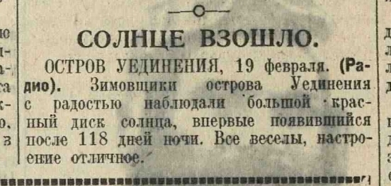 Солнце взошло//Правда 20 февраля 1935 №50