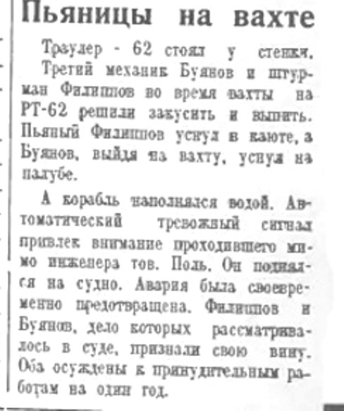 Пьяницы на вахте//Полярная правда 21 декабря 1936 №294