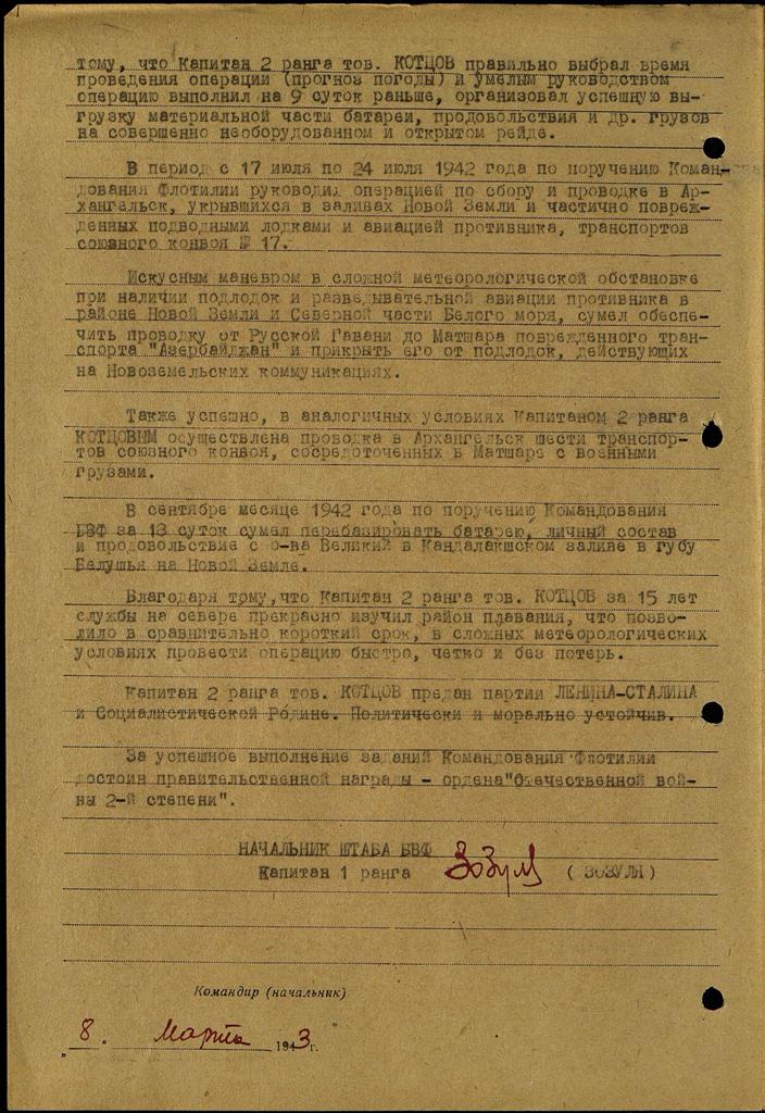 Приказ флота (флотилии) №: 9 от: 08.03.1943 БВФл