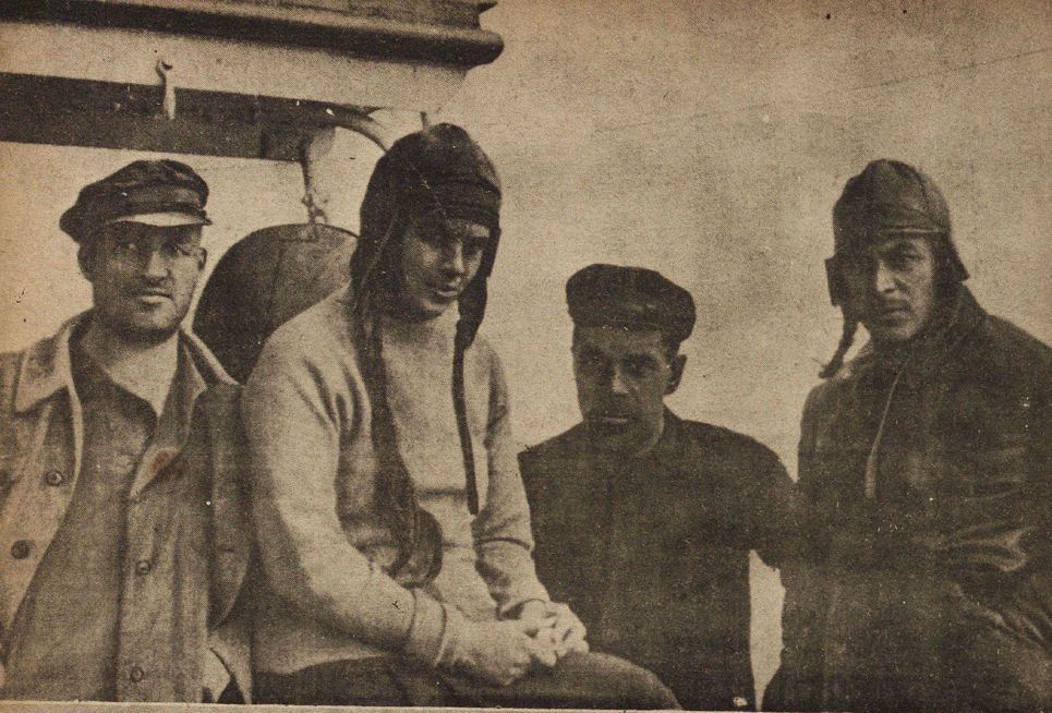 Зимовщики Северной Земли; в центре начальница Северной Земли тов. Демме.