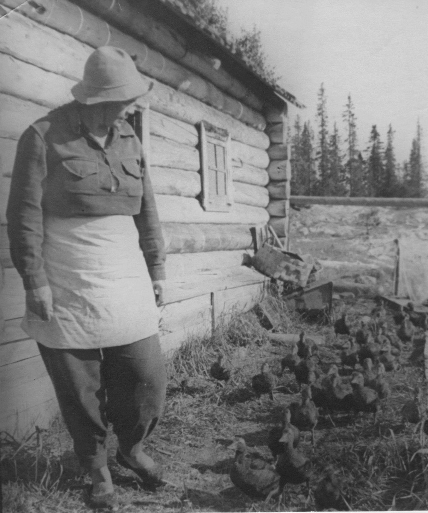 Н.П. Демме с гагачатами. о. Лодейный. 1949 г. Научный архив Кандалакшского заповедника.jpg
