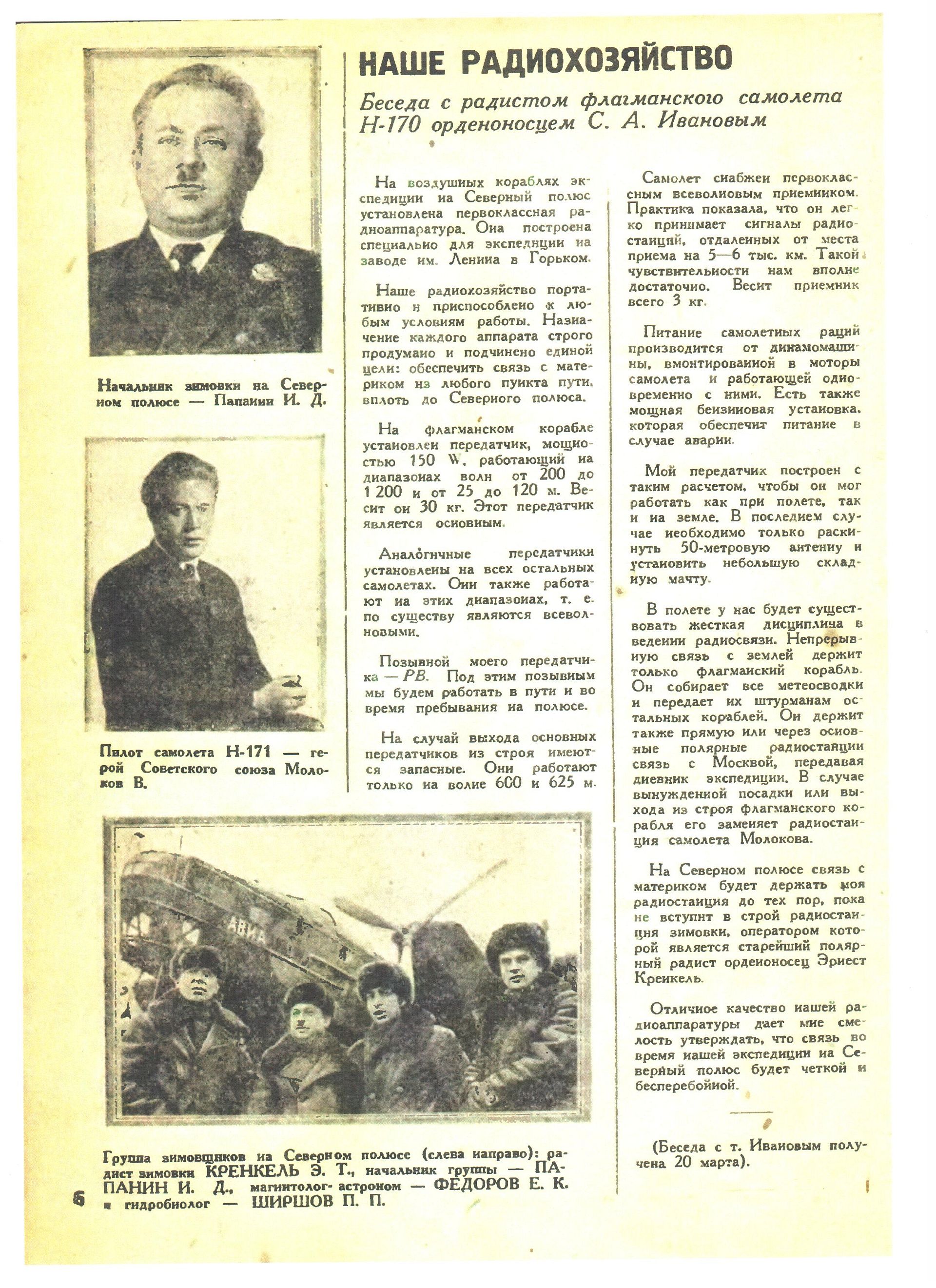 «Меня часто спрашивают: отличались ли радиостанции АНТ-25 и 209-й машины? Да, отличались. На последней стояла стандартная станция РСБ-5бис, которыми оснащались тогда все наши тяжелые самолеты. На АНТ-25 стояли специально разработанные передатчики РД, обладавшие гораздо большим диапазоном действия и потому более пригодные для трансполярного перелета...».