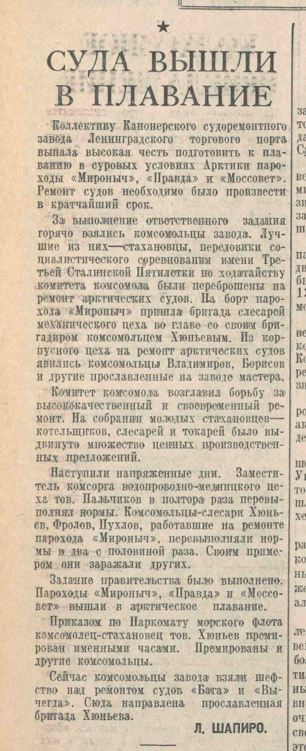 Суда вышли в плавание Комсомольская  правда 23 августа 1939 №193 (4376).jpeg