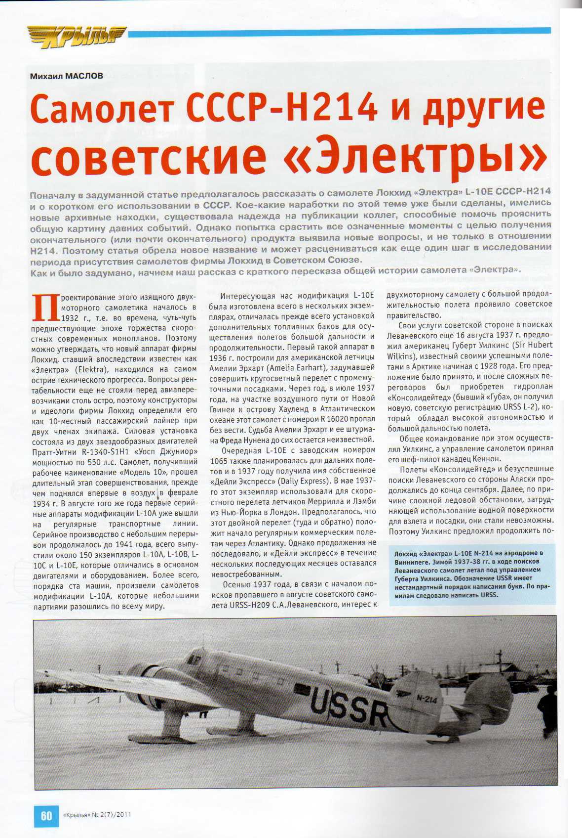 Махонькое добавление к статье Михаила Маслова "Самолет СССР-Н214 и другие советские "Электры". Скорее всего в Акте в качестве ЛОКХИД-ЭЛЕКТРО с моторами P&W упоминается L-10A СССР-Л3451 из состава ЭОН (эскадрильи особого назначения) ГВФ.