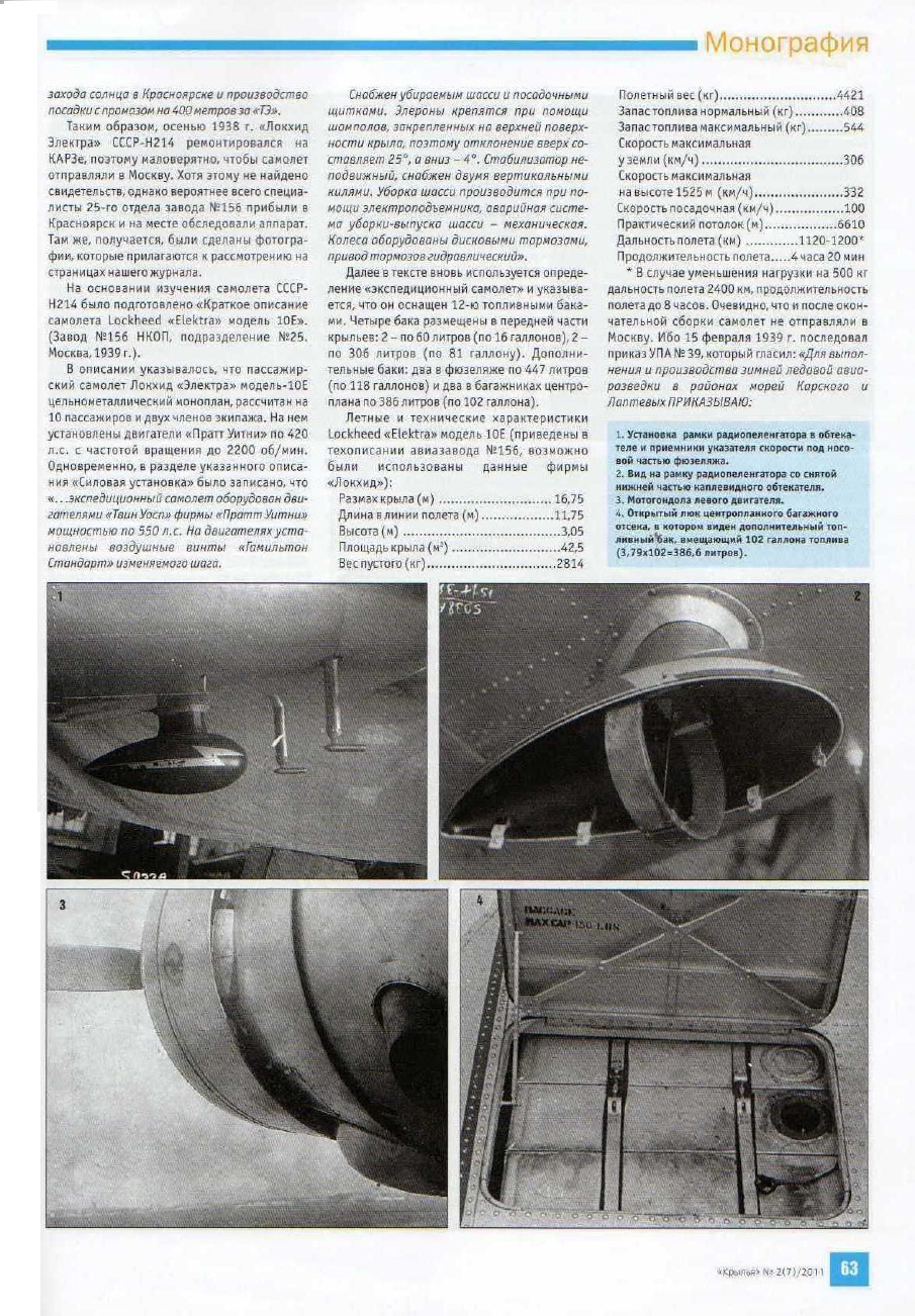 1. №7888 - 17 июня 1938 г. "Н-214" Локхид "Электра" - 2 "Прат Уитни" - Управление Полярной авиации ГУСМП.
