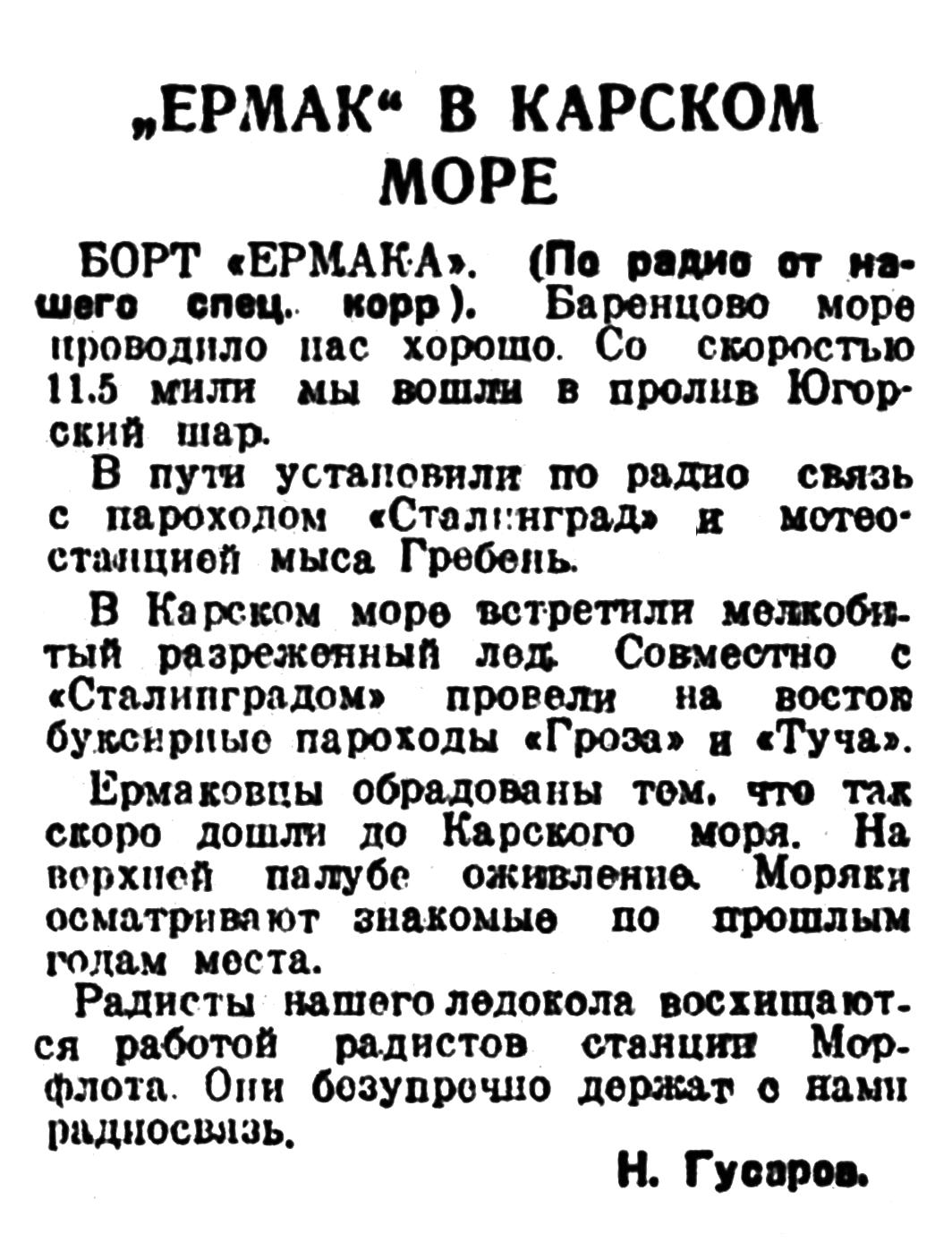 Правда Севера, 1939, № 177, 4 августа-ЕРМАК В КАРСКРМ МОРЕ.jpg