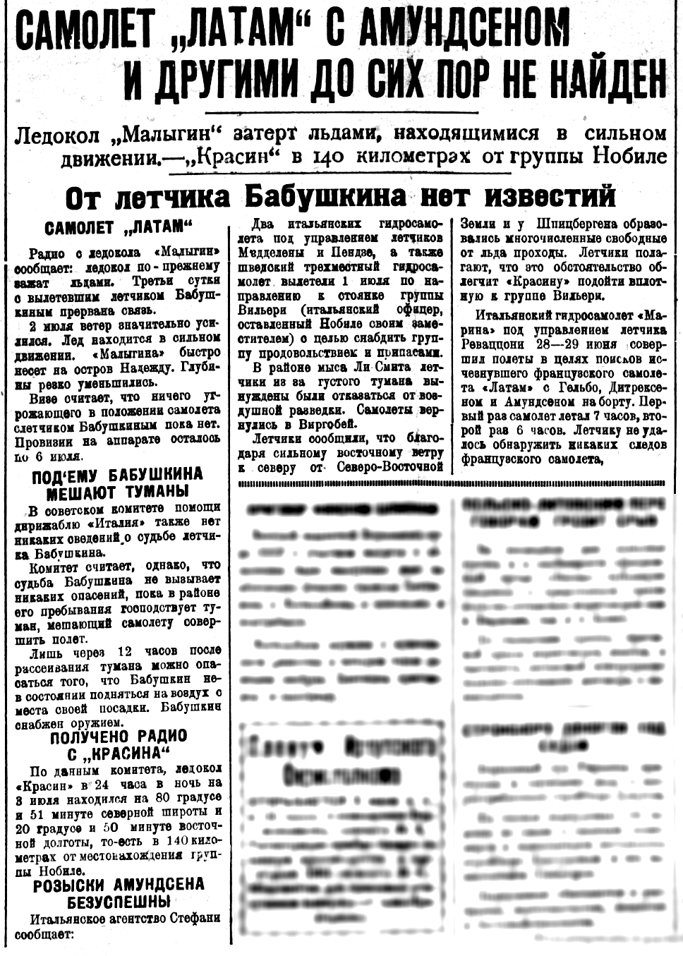 В советском комитете помощи дирижаблю «Италия» также нет никаких сведений,о судьбе летчика Бабушкина.