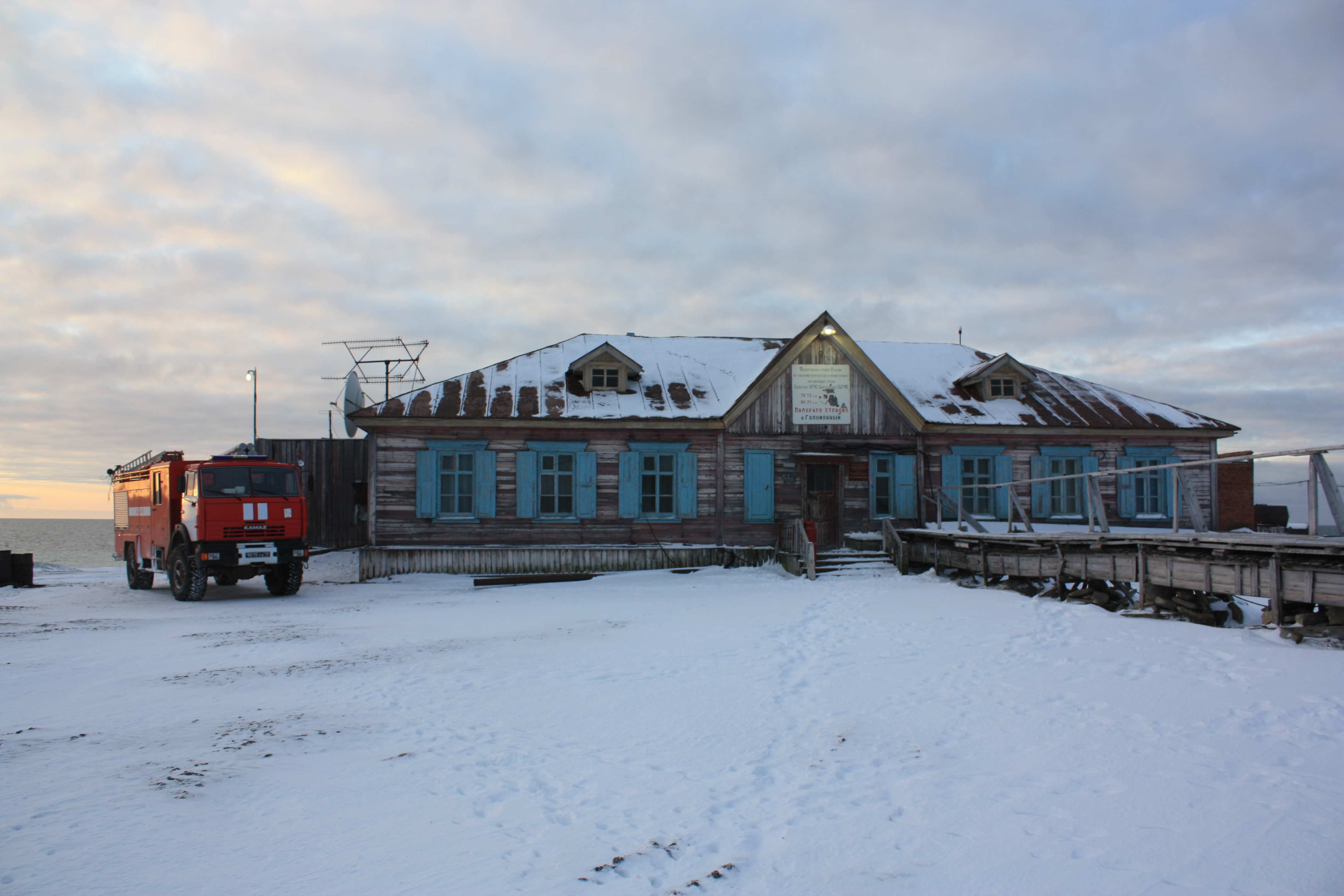 ...Качнувшись в последний раз, вездеход наконец остановился. Нырнув под брезент, вместе с попутчиком мы выпрыгнули на снег, сразу же окунувшись в ночную морозную тишину. Где-то, казалось, совсем неподалеку, мерцали звезды. Утопая в сугробах, стояли на берегу три одноэтажных домика. Мачты антенн, провода, метеобудки — все это было мне хорошо знакомо. Удивило лишь отсутствие собачьей своры, прибегающей обычно первой встречать гостей.