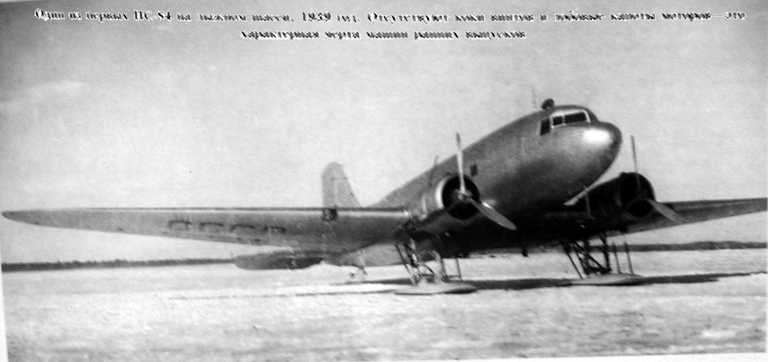 Встречалось раньше фото испытаний ПС-84 первых серий на неубираемом лыжном шасси.