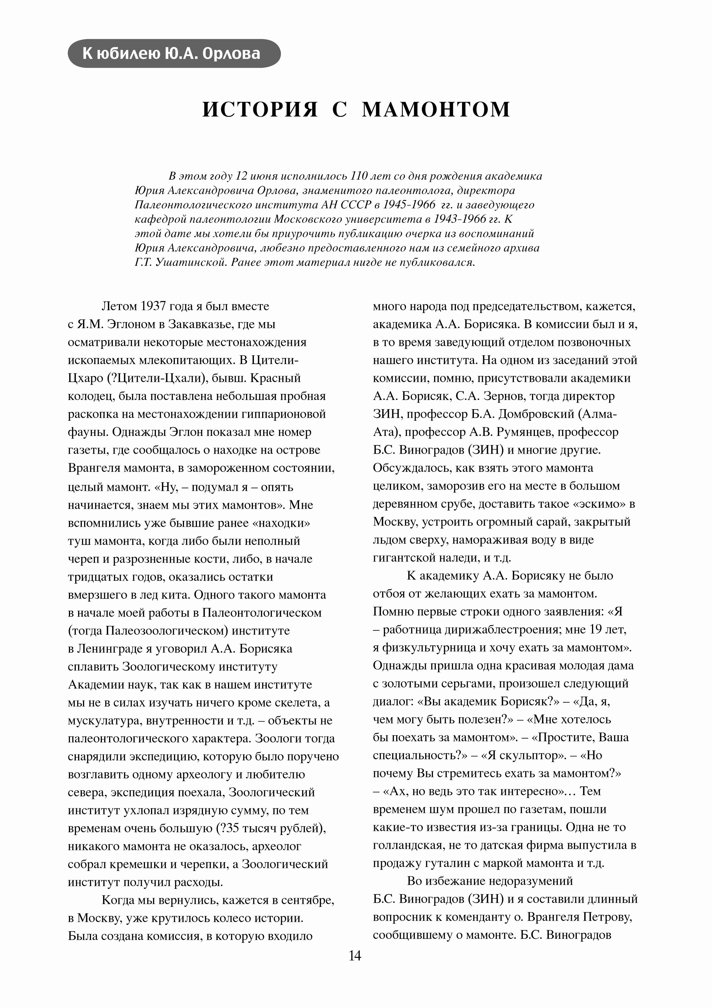 В то время в Палеонтологическом институте я заведовал либо отделом позвоночных (всех), либо – во всяком случае – млекопитающими. Поэтому и мамонты были моими подопечными, я за них «отвечал».
