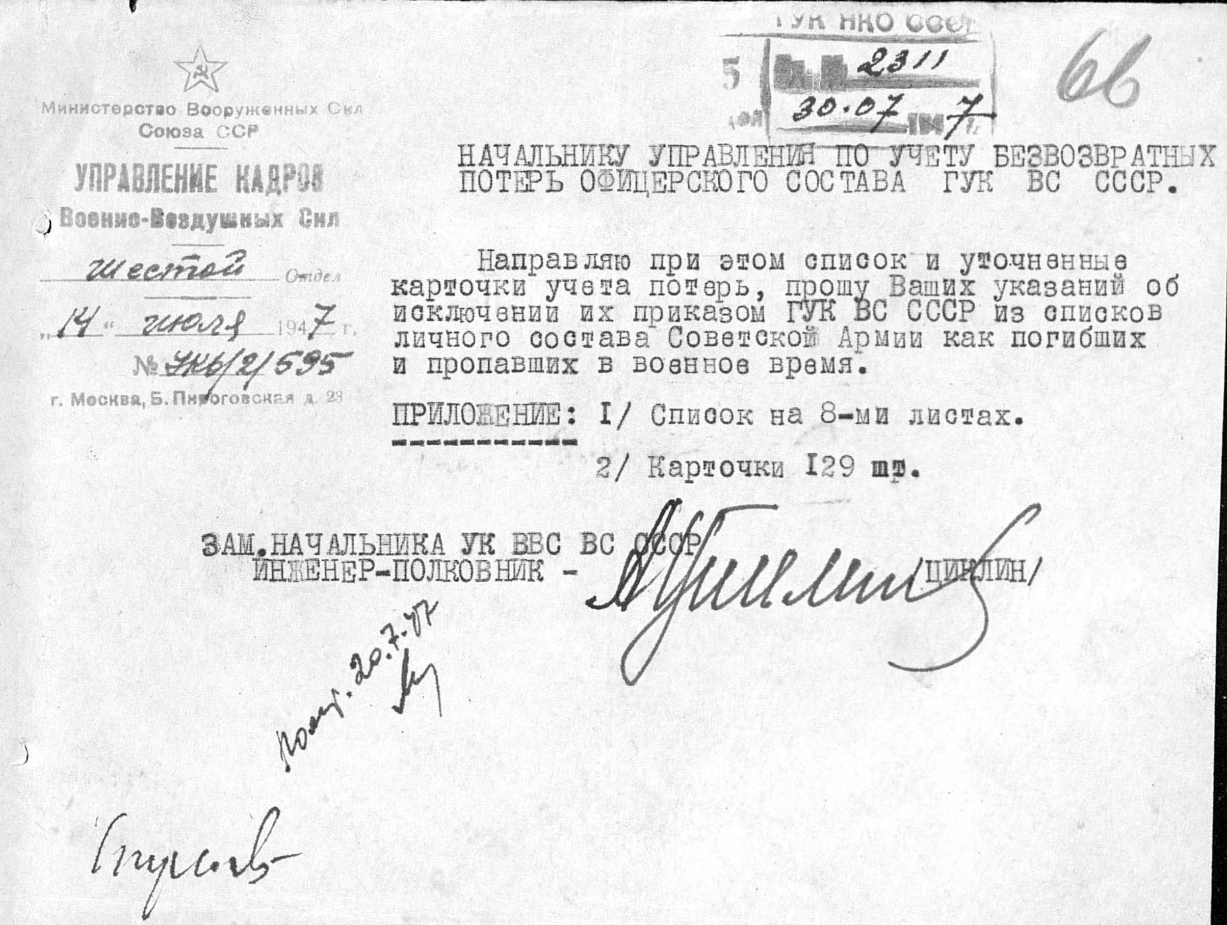 Дата донесения 30.07.1947
