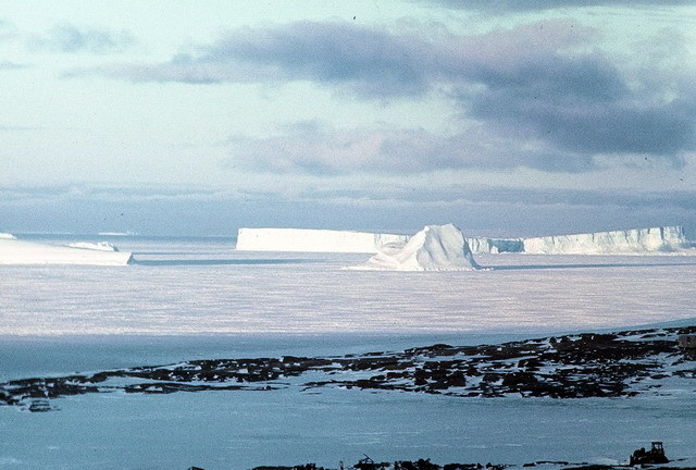 Только что корабль закончил работы в районе базы Молодежная, сейчас идем к станции Прогресс.