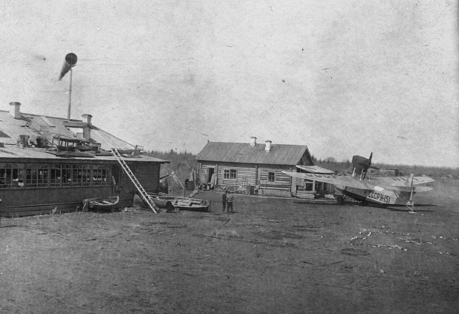В. И. Левченко в Красноярске 1936. Перелет Леваневского на Валти Н-208. На заднем плане Н-151 и еще один МП-1 с номером Н-5*?