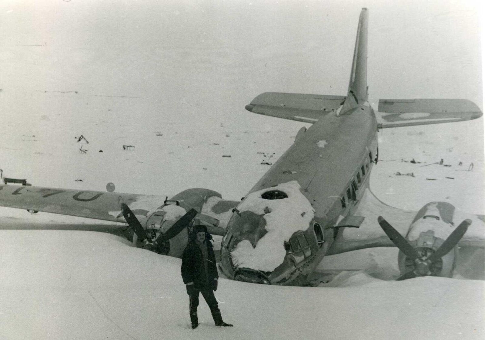 Anatoli Janochkin, эта авария случилась 13 февраля 1981г, самолет ИЛ-14 полярной авиации СССР.Сейчас самолет стоит в поселке Обсерватории Кренкеля, т.е. притащен с взл. полосы. Во время аварийной посадки я находился в самолете, отделался переломами ног. Два человека погибли. Есть фото, сделанные на следующий день после аварии.