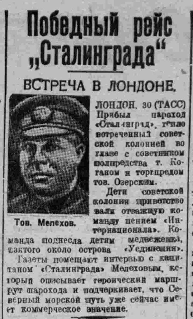 Вместе с союзным конвоем Мелехов уходил на запад, рассчитывал вернуться летом по Северному морскому пути. Но не вернулся. Погиб по ту сторону Атлантики от фашистской торпеды.