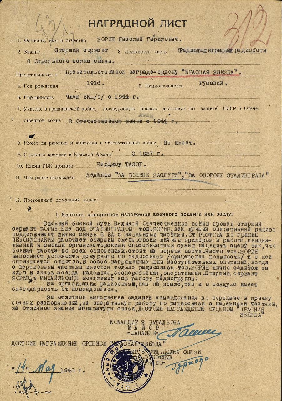 Фронтовой приказ №: 24/н от: 22.05.1945 ВС 8 ВА 4 Украинского фронта