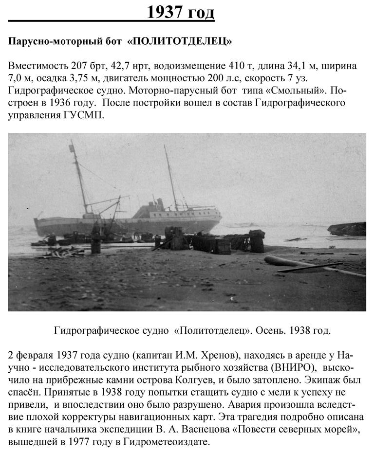 "Политотделец" на прибрежных камнях острова Колгуев, 1937 год.