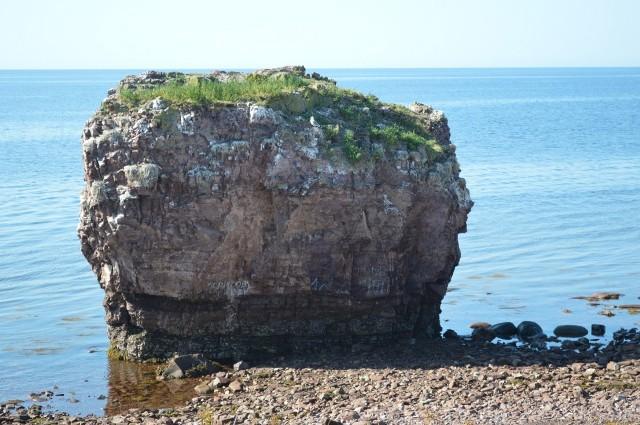 Морской берег здесь низкий и плоский, представляет собой зелёный лужок с низенькой травкой, метрах в тридцати от воды переходящий в каменистую россыпь. Камни в основном того же красно-бурого цвета, что и в кузоменьских песках, но встречаются и самые разные: серые, синие, зелёные, красные, пятнистые, в полоску, в крапинку, с причудливыми узорами. Преобладающий размер – в три-четыре ладони, хотя встречаются самые разные: от совсем мелких до крупных валунов.