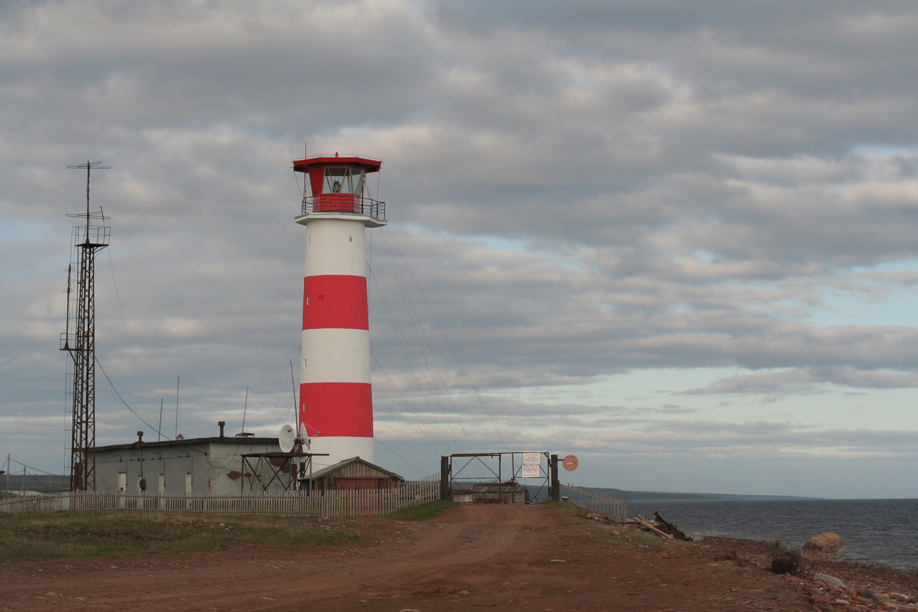 Можно попробовать вписаться на маяк. У въезда на территорию – несколько слегка выцветших угрожающих надписей типа “Объект МО РФ” и “Посторонним в.” Рядом калитка, без охраны и постоянно открытая. И забор только с одной стороны, с другой только одна секция. Некоторые постройки явно жилые. И свободное место для одного человека на одну ночь, думаю, могло бы найтись. Надо искать самого главного начальника.