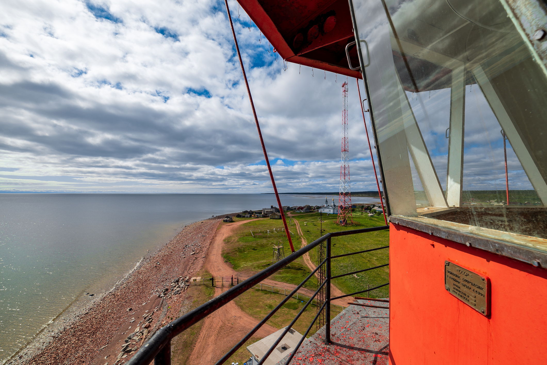 Линия Терского берега в основном ровная. Но в этом месте она резко выдаётся в море, образуя небольшой полуостров, который, собственно, и занимает село Кашкаранцы, стоит прямо у воды. С трёх сторон море, и даже не сразу понятно, с какой стороны шумит прибой. Самое примечательное здесь сооружение – огромный маяк. Находится в непосредственной близости от деревни, к нему прилегает небольшая огороженная территория со своим комплексом построек, рядом также находится метеостанция. Я не преминул поинтересоваться, как работают наши коллеги из Мурманского УГМС. Техник-метеоролог Наташа поведала мне, что их тоже секвестр сильно коснулся - из пяти должностей оставляют две, из станции сделают пост. Печально, только начали возрождать метеослужбу.