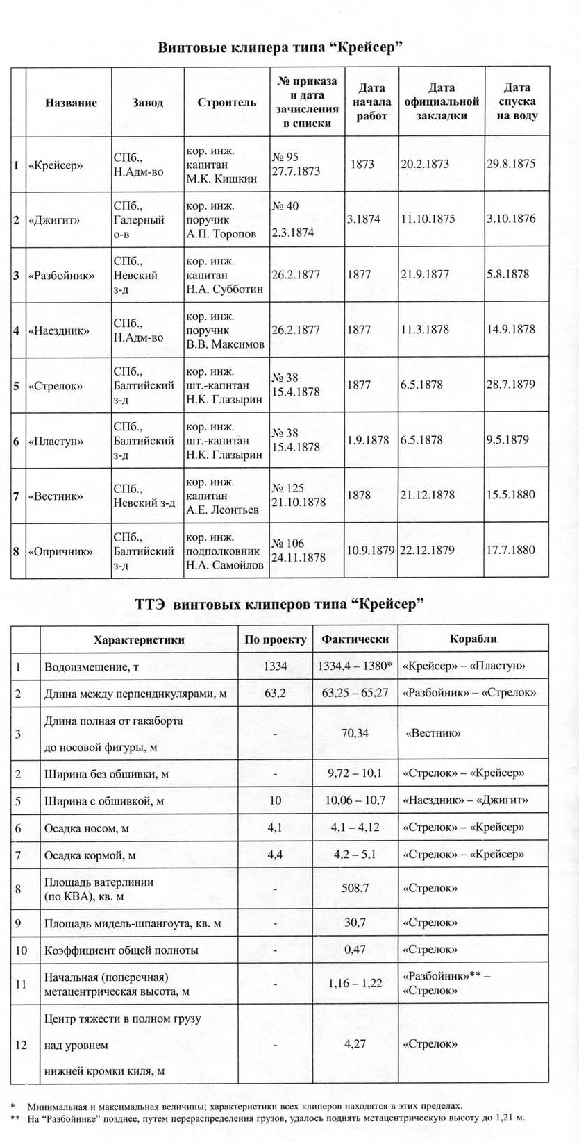 Клипера пронесли Андреевский флаг по всем морям и океанам. Они участвовали в войнах, выполняли дипломатические миссии, открывали земли. Их имена, как и имена служивших на них моряков, навеки остались в истории, будучи нанесены на карты в названиях бухт, заливов, мысов и гор. На клиперах начиналась служба целой плеяды будущих адмиралов, политиков, ученых, министров. В своем развитии парусно-винтовые клипера насчитывали четыре серии, всего 21 единицу. Первую составляли шесть малых клиперов архангельской постройки. Вторую - три корабля, заказанные за границей. В третью входили четыре единицы типа "Алмаз". В четвертую, самую многочисленную, - восемь единиц типа "Крейсер".